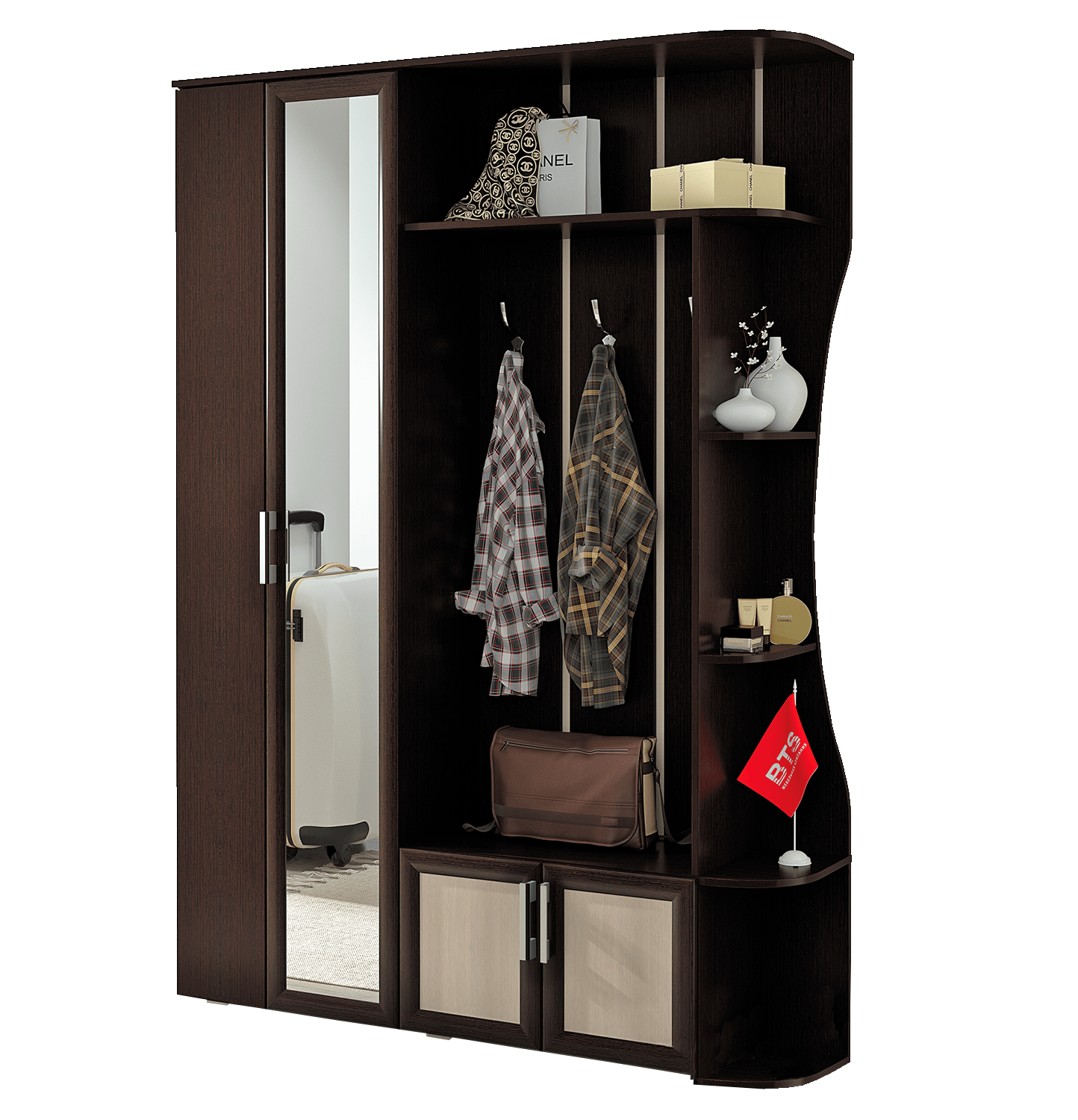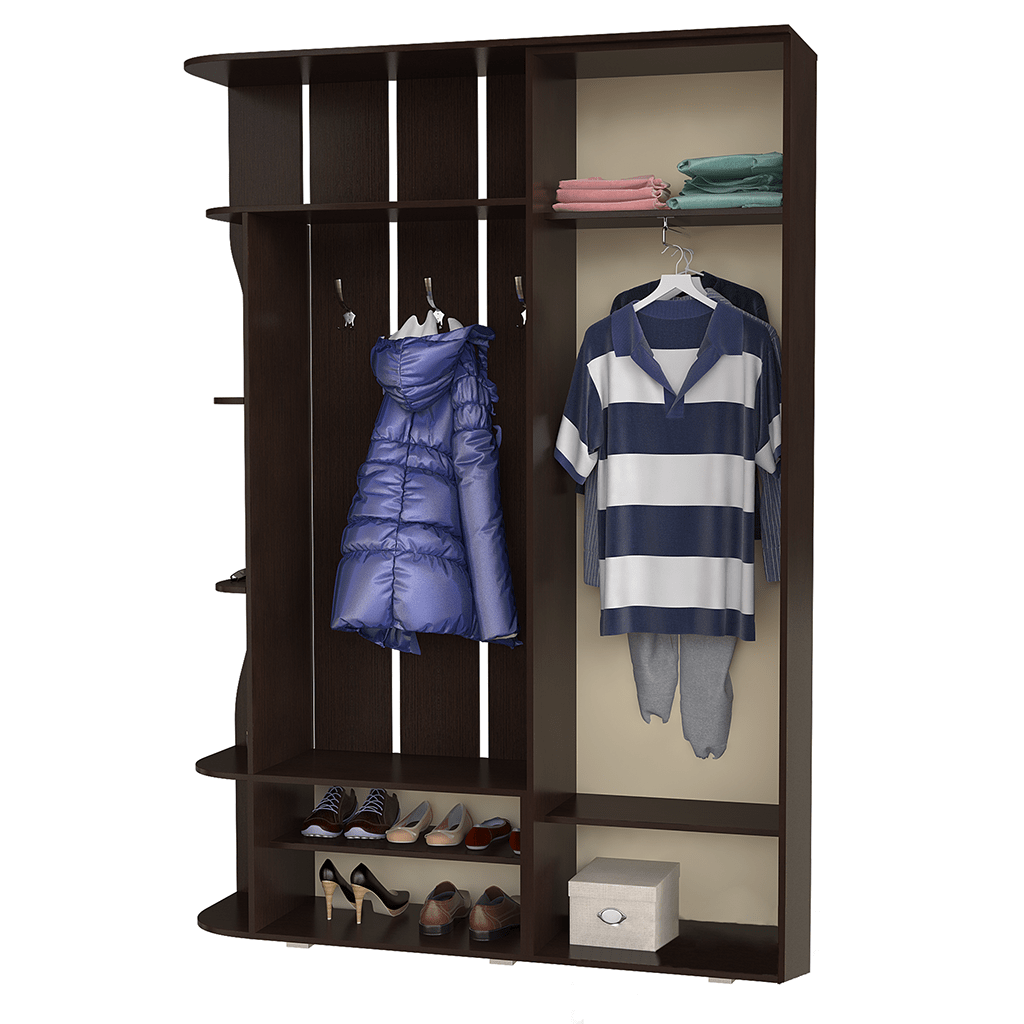 Прихожая "Ксения -1" приятно удивит Вас своими компактными размерами и вместительными системами для хранения верхней одежды, обуви и аксессуаров. Фасад шкафа декорирован большим зеркалом, позволяющим любоваться собой в полный рост. Лаконичный дизайн и контраст цветовых решений поможет создать неповторимый дизайн в вашем доме. Дополнительным удобством для Вас послужит выдвижная штанга и возможность сборки модели как на левую, так и на правую сторону.