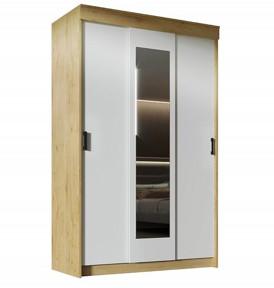 Удобный шкаф для хранения одежды в идеальном порядке. Шкаф оснащен четырьмя полками для хранения текстиля и штангой для подвешивания одежды на плечиках с полкой для головных уборов, зонтов и других домашних вещей. Также у шкафа есть большое зеркало.