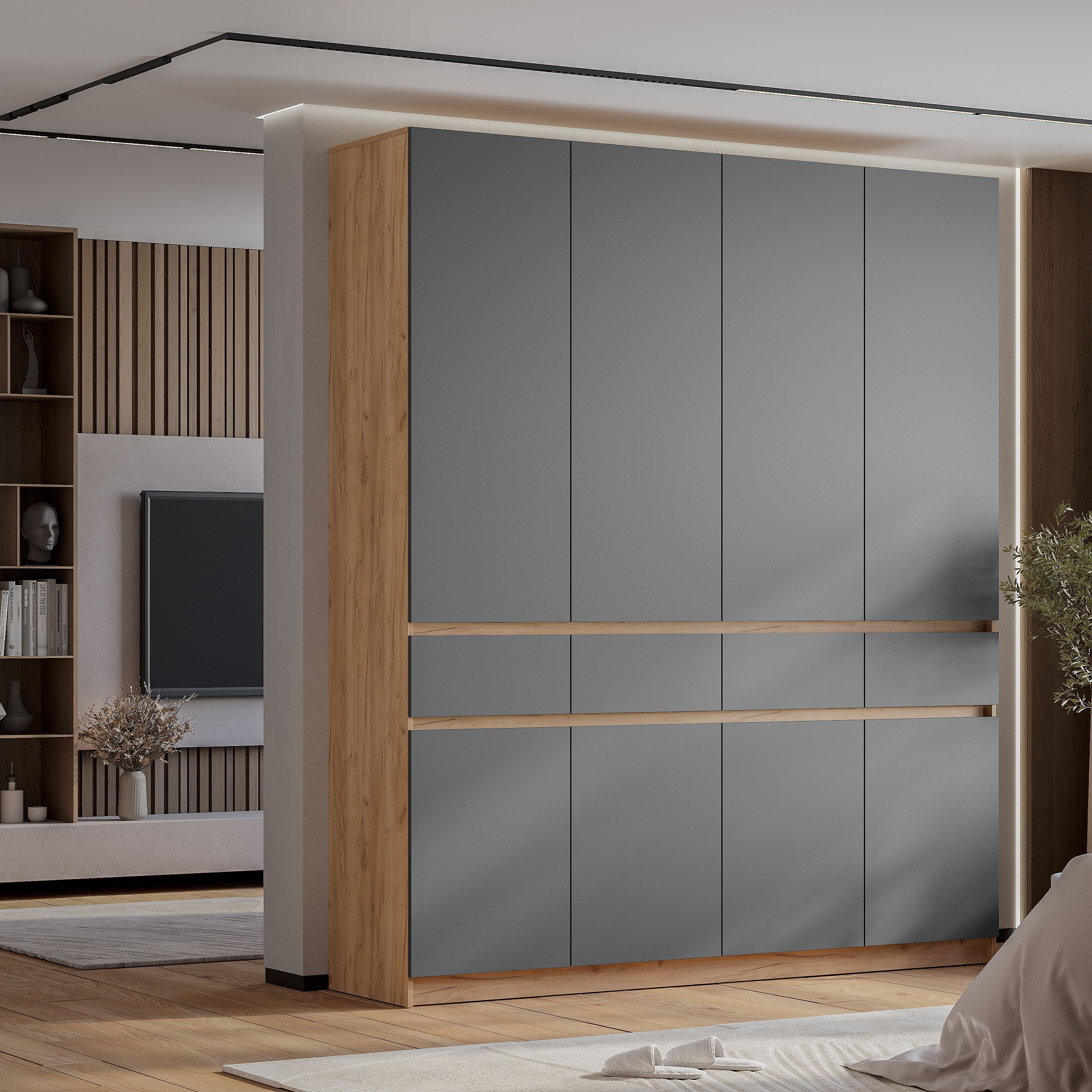 Шкаф 4-х створчатый "Багира" ШК-13 - это стиль, универсальность и вместительность. Хромированная штанга для аккуратного вертикального хранения одежды.