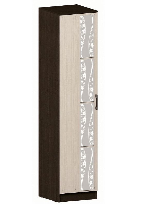 Корпус шкафа изготовлен из прочной ламинированной древесностружечной литы, устойчивой к повышенной влажности и температурным колебаниям. Фасад декорирован зеркалами с рисунком "цветочная феерия".