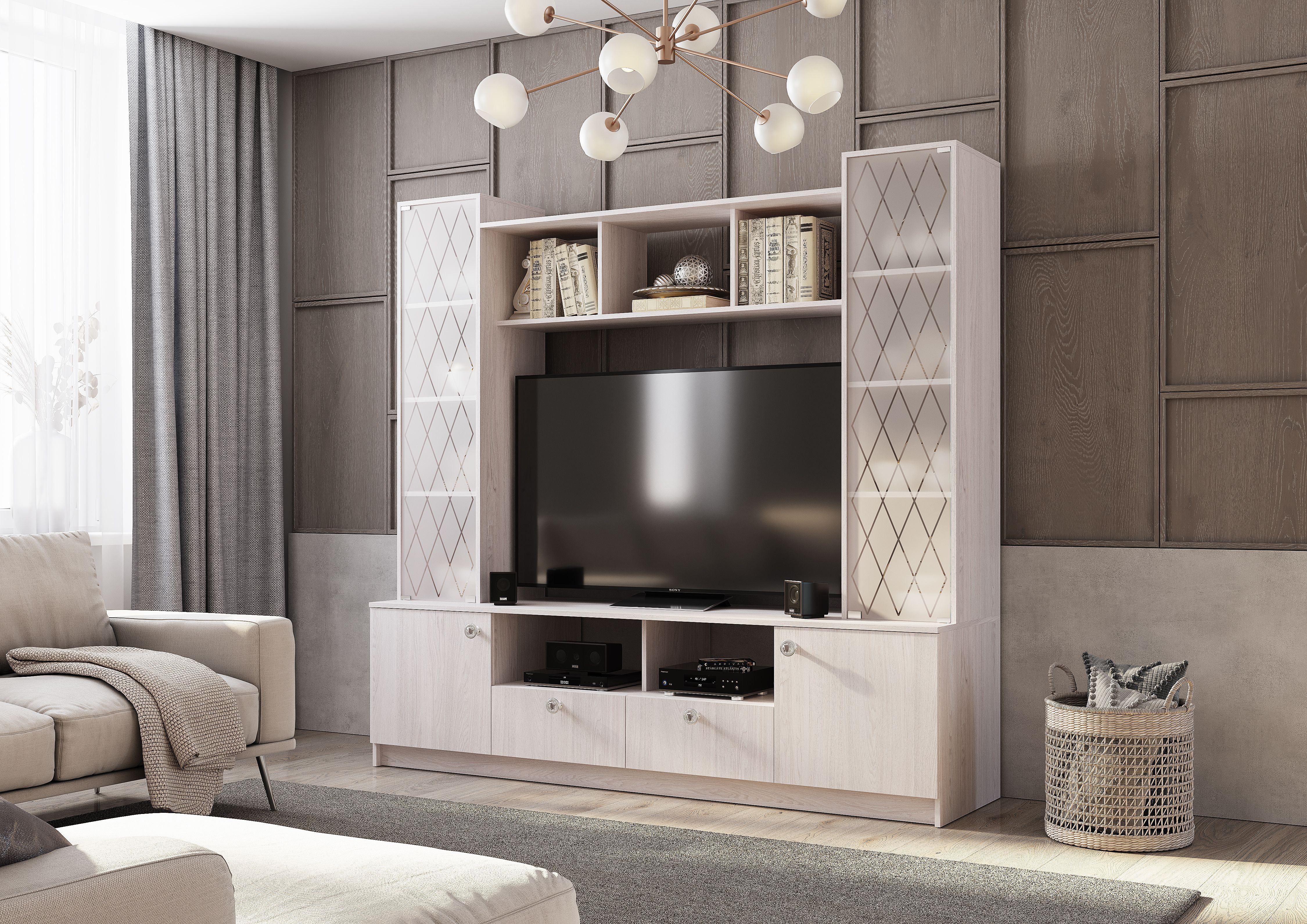 Ниша под ТВ Высота (мм): 928 Глубина (мм): 532 Ширина (мм): 1300