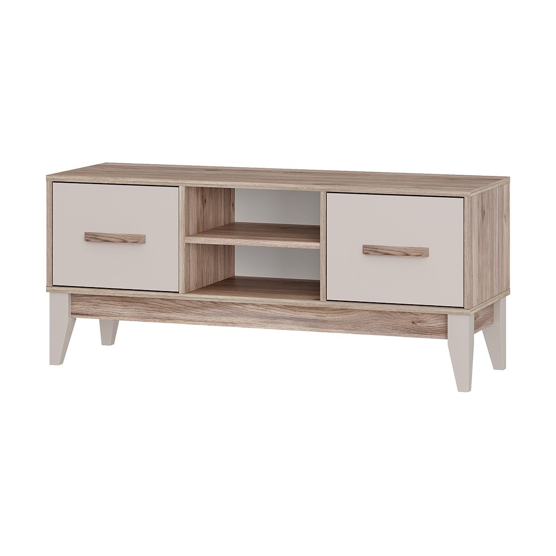 Многофункциональная тумба под ТВ «Скандика» — универсальная модель для современной гостиной, которую отличает минималистичный дизайн и оптимальное сочетание открытых и закрытых зон хранения.